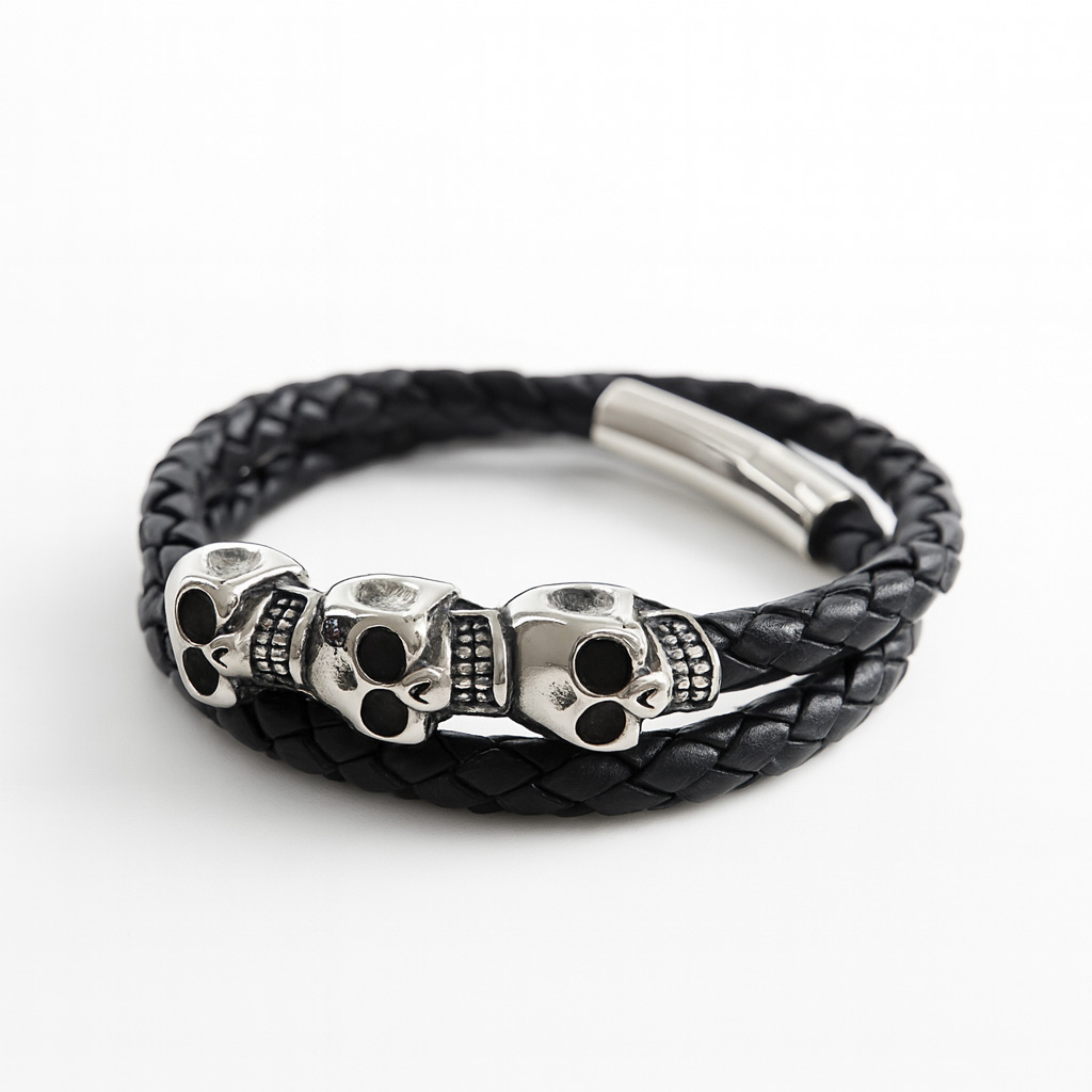 Schwarzes Totenkopf Männer Lederarmband – Für Damen und Herren.