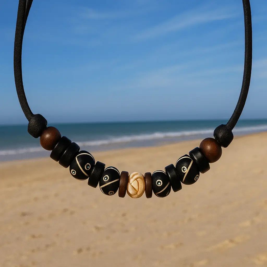 | Materialien | Hochwertiger Rindsleder, Knochen, Kokosnuss Perlen. |