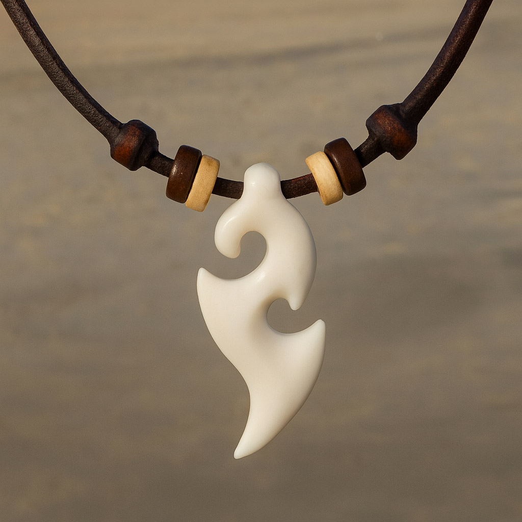 Entdecke sie das Surferkette Hei Matau Lederhalskette aus Neuseeland.